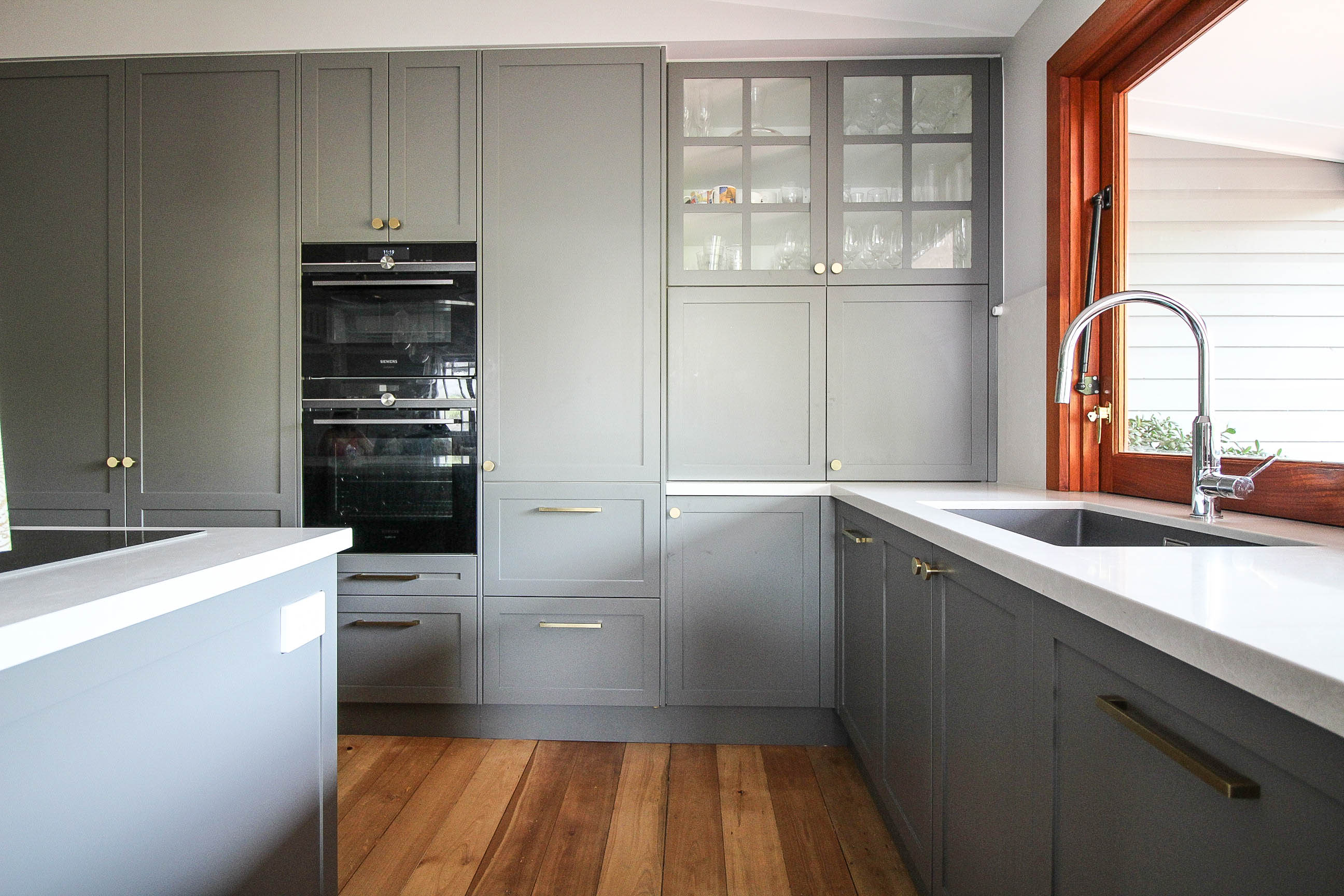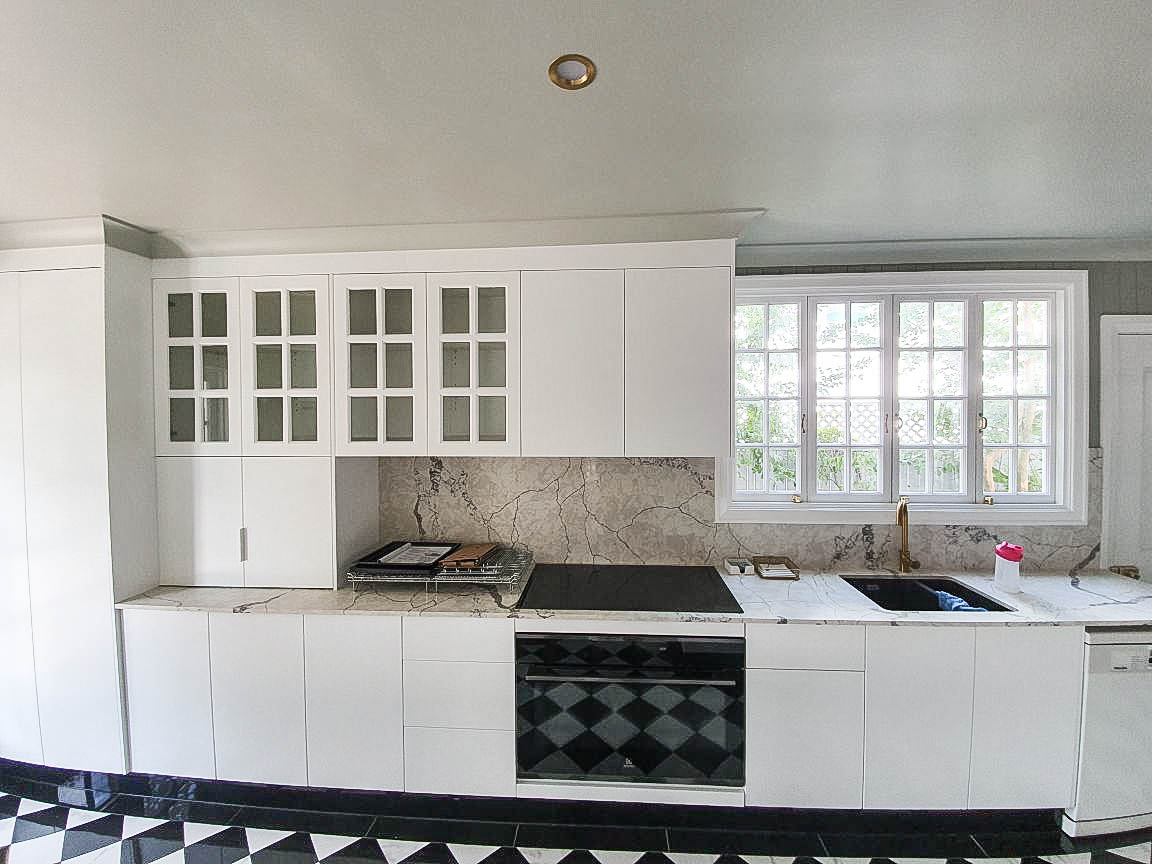 At Interior Finishers we specialise in kitchen renovations, we can do both new and rejuvenations. Rather than replacing an existing kitchen that has become dated but is still in good condition we make your existing kitchen look brand new resulting in substantial savings compared to replacing the whole kitchen. The renovation can include 2 Pak painting of all doors and visible surfaces (occasionally on site work is required). New splash backs in any colour, new bench tops if required and modernising of handles and appliances and the results are just like a brand new kitchen. Colour choice is endless we also use a team of experienced cabinet makers for any changes or additions in cabinetry that may be required.