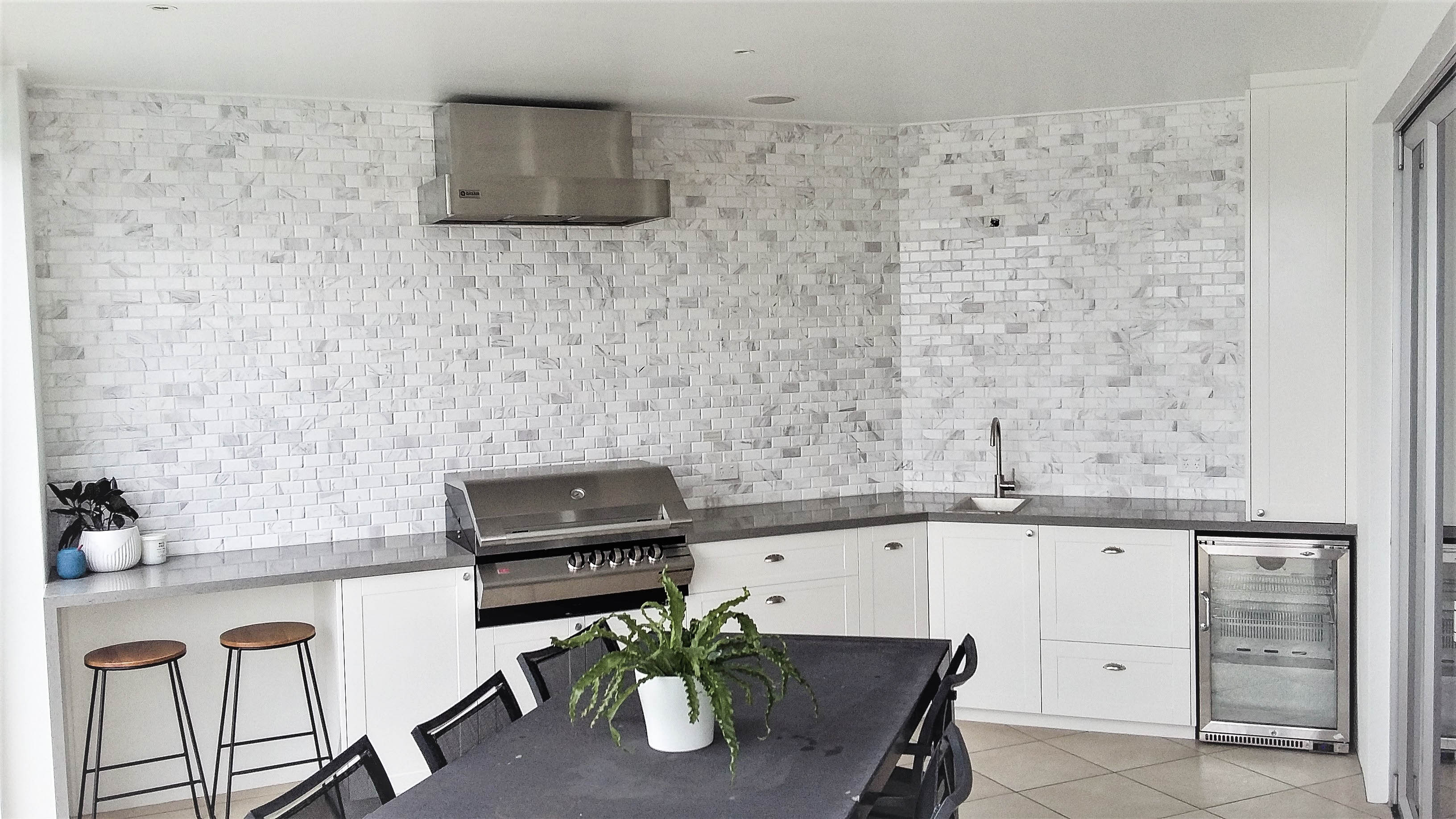 Interior Finishers are not limited to standard indoor kitchens we also specialise in exterior kitchens and entertainment areas. Due to the durability of 2 Pak paint it is perfect for outdoor areas as it is hard wearing fades much slower than standard paints. An old aluminium outdoor kitchen can be made to look brand new using high gloss 2 Pak.